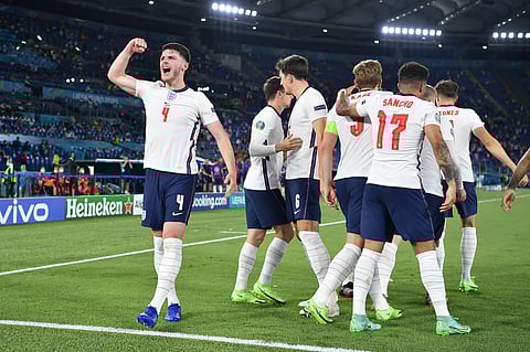 Euro 2020 England vs Ukraine : यंदाच्या युरो कप स्पर्धेतील प्रबळ दावेदार समजल्या जाणाऱ्या इंग्लंडने क्वार्टर फायनलमध्ये मोठा धमाका करत युक्रेनला बाहेरचा रस्ता दाखवला. या सामन्यातील विजयासह इंग्लंडच्या संघाने थाटात सेमीफायनल गाठलीये. 1996 नंतर पहिल्यांदाच इंग्लंडचा संघ सेमीफायनलमध्ये पोहचलाय. आतापर्यंतच्या स्पर्धेत एकही गोल न स्विकारण्याचा आपला रेकॉर्ड अबाधित राखत त्यांनी युक्रेनला 4-0 असे पराभूत केले. मोठ्या स्पर्धेतील नॉक आउट स्टेजमध्ये 4 गोल डागण्यासाठी इंग्लंडला खूप प्रतिक्षा करावी लागलीये. 1966 च्या फिफा वर्ल्ड कपच्या फायनलमध्ये इंग्लंडने 4-2 असा विजय नोंदवला होता. (Euro 2020 Harry Kane twice Harry Maguire Jordan Henderson Goal England Win 4-0 against Ukraine Met Denmark Semifinal)