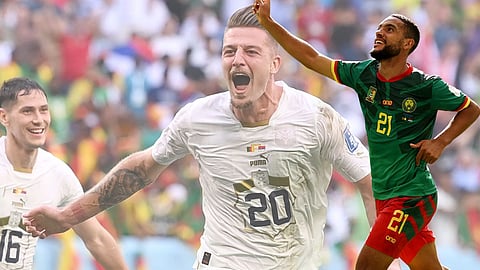 FIFA World Cup 2022 Cameroon Vs Serbia : कॅमेरून आणि सर्बिया यांच्यात झालेल्या ग्रुप G मधील सामन्यात दोन्ही संघांनी 90 मिनिटाच्या खेळामध्ये प्रत्येकी 3 गोल केले. त्यामुळे हा सामना 3 - 3 असा बरोबरीत सुटला. मात्र हा सामना यंदाच्या वर्ल्डकपमधील आतापर्यंतचा सर्वात चुसशीचा सामना ठरला. कॅमेरूनने सर्बियावर 29 व्या मिनिटाला पहिला गोल केला. मात्र पहिल्या हाफमधील अतिरिक्त वेळेत सर्बियाने दोन गोल करत हाफ टाईमला सामन्यात 2 - 1 अशी आघाडी घेतली. याचबरोबर सर्बिया हा पहिल्या हाफच्या अतिरिक्त वेळेत दोन गोल करणारा 1966 नंतरचा पहिला संघ ठरला. त्यांनी कॅमेरूनवर 148 सेकंदात दोन गोल डागले. मात्र दुसऱ्या हाफमध्ये कॅमेरूनने जोरदार मुसंडी मारत पिछाडी भरून काढली. कॅमेरूनने दुसऱ्या हाफमध्ये आपले वर्चस्व गाजवत सामना 3 - 3 असा बरोबरीत सोडवला.