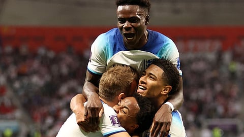 FIFA World Cup 2022 England Vs Iran : फिफा वर्ल्डकप 2022 मधील ग्रुप B च्या सामन्यात बलाढ्य इंग्लंडने इराणचा 6 - 2 अशा मोठ्या गोलफरकाने पराभव केला. हॅरी केनच्या नेतृत्वातील इंंग्लंडला संभाव्य विजेत्यांमध्ये गणले जाते. इंग्लंडने कतारमधील वर्ल्डकपची धाडाकेबाज सुरूवात करून आपल्या लौकिकास साजेसा खेळ केला. इंग्लंडकडून बुकायो साकाने दोन गोल केले तर रहीम स्टेर्लिंग, ज्यूड बेलिंगहम, मार्कस रॅशफोर्ड आणि जॅक ग्रिलीशने प्रत्येकी 1 गोल केला. इराणकडून मेहदी तारेमीने 2 गोल केल्या.