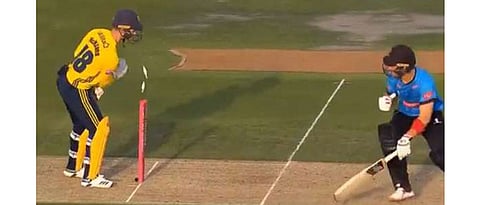 लंडन : यष्टीरक्षण म्हटले की सर्वप्रथम भारताचा माजी कर्णधार महेंद्रसिंह धोनीचे नाव समोर येते. त्याच्या यष्टीरक्षणाच्या नवनव्या पद्धती पाहून आजवर अनेकजण थक्क झाले आहेत. मात्र, आता धोनीच्या यष्टीरक्षणालाही मागे टाकणारा प्रकार नुकताच घडला आहे.