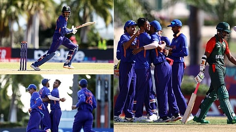India U19 vs Bangladesh U19, Super League Quarter-Final 2 : अँटिग्वाच्या मैदानात रंगलेल्या सुपर लीग क्वार्टर फायनलमध्ये युवा टीम इंडियाने बाजी मारली. बांगलादेशनं दिलेल्या 112 धावांचे आव्हान परतवून लावत टीम इंडियाने सेमी फायनल गाठली आहे. तांबेनं उत्तुंग षटकार खेचत संघाच्या विजयावर शिक्कामोर्तब केला. दुसऱ्या बाजूला कर्णधार यश धूलही नाबाद परतला.