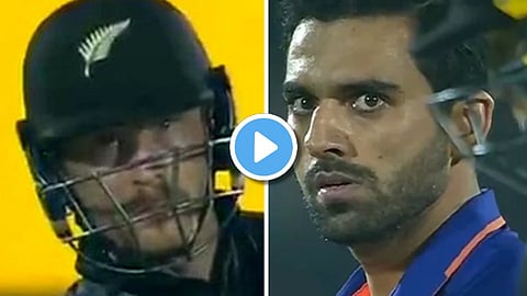 जयपूरच्या स्टेडियमवर रंगलेल्या टी२० सामन्यात मार्टिन गप्टिल आणि मार्क चॅपमॅन जोडीने न्यूझीलंडला दमदार सुरुवात मिळवून दिली. भुवनेश्वर कुमारने डॅरेल मिशेलला शून्यावर बाद केले पण त्यानंतर गप्टिल आणि चॅपमॅन जोडीने दुसऱ्या विकेटसाठी १०९ धावांची भागीदारी केली. न्यूझीलंडकडून अनुभवी मार्टीन गप्टीलनेही चांगली खेळी केली. ४२ चेंडूत त्याने ३ चौकार आणि ४ षटकार खेचत ७० धावांची खेळी केली. वेगवान गोलंदाज दीपक चहरला षटकार खेचल्यानंतर गप्टीलने त्याला एक नजर दिली होती. पण त्यानंतर गप्टीलला बाद केल्यानंतर दीपक चहरने त्याला जोरदार खुन्नस दिली.