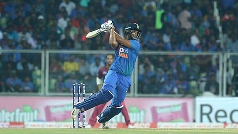 फलंदाजीसाठी मैदानात उतरलेल्या सलामीवीर रोहित शर्मा आणि लोकेश राहुल यांना डावाची सुरवात करण्यात यश मिळाले नाही. लोकेश राहुलला वॉल्शने बाद करत भारताला पहिला धक्का दिला. रोहित शर्माही काही वेळात तंबूत परतला. कर्णधार विराट कोहलीने तिसऱ्या क्रमांकावर शिवम दुबेला बढती दिली. याचा फायदा घेत शिवमने आपल्या टी-20 कारकीर्दीतील पहिले अर्धशतक साजरे केले.