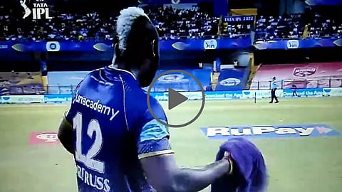 IPL 2022 : राजस्थान रॉयल्स आणि कोलकाता नाइट रायडर्स यांच्यात आयपीएलचा 47 सामना खेळल्या गेला. नाणेफेक जिंकून राजस्थान रॉयल्सने प्रथम फलंदाजी केली. सामन्यादरम्यान कोलकाताचा दिग्गज आंद्रे रसेलकडून एक मनोरंजक दृश्य पहायला मिळाले. सामन्यादरम्यान रसेल हातात टॉवेल घेऊन सलमान खानच्या भूमिकेत डान्स करत चाहत्यांना मनोरंजन करताना दिसला. त्याचा व्हिडिओ सोशल मीडियावर प्रचंड व्हायरल होत आहे. (Andre Russell Dancing Video Viral)