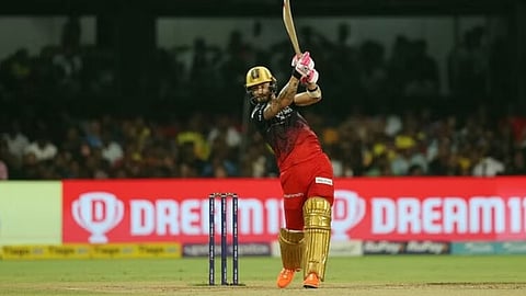 बंगळुरूचा कर्णधार फाफ डुप्लेसीने आपले अर्धशतक पूर्ण केले. नवव्या षटकाच्या शेवटच्या चेंडूवर त्याने आपले अर्धशतक पूर्ण केले. तरा 10व्या षटकाच्या तिसऱ्या चेंडूवर मॅक्सवेलने चौकार मारून 50 धावा पूर्ण केल्या.