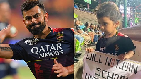 या फोटोत एक आरसीबीचा टी शर्ट घालून उभी असलेली छोटी मुलगी दिसते. तिच्या हातात एक बॅनर दिसत आहे. त्यावर 'जोपर्यंत आरसीबी आयपीएल जिंकत नाही तोपर्यंत मी शाळेला जाणार नाही.' असा मजकूर लिहिलेला आहे. या फोटोवर सोशल मीडियावरील नेटकऱ्यांनी खूप रिअॅक्शन दिल्या आहेत.