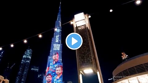 T20 World Cup 2021 स्पर्धेला १७ ऑक्टोबरपासून सुरूवात होणार आहे. युएईमध्ये आता IPL च्या शेवटच्या टप्प्यातील सामने सुरू आहेत. हे सामने संपल्यानंतर विश्वचषकाच्या सामन्यांना सुरूवात होणार आहे. यंदाच्या T20 विश्वचषकाचे यजमानपद भारताकडे आहे. पण असे असले तरी कोरोनाच्या भीतीपोटी ही स्पर्धा भारताबाहेर युएई आणि ओमानमध्ये खेळवण्यात येणार आहे. या स्पर्धेसाठी टीम इंडियाच्या खास नव्या जर्सीचे ट्विटरवरून अनावरण करण्यात आले. भारतीय संघाची जर्सी आज फोटोच्या रूपाने दाखवण्यात आली. भारतीय संघातील काही खेळाडूंचा नव्या जर्सीतील एक फोटो BCCI ने पोस्ट केला. त्यानंतर आज चक्क दुबईच्या बुर्ज खलिफा या उंच इमारतीवर भारताची जर्सी दाखवण्यात आली. बुर्ज खलिफावर एखादी गोष्ट दिसणे हा अभिमानाचा क्षण असतो. त्यामुळेच, बुर्ज खलिफावर टीम इंडियाची जर्सी दिसणं हा प्रत्येक भारतीयासाठी अभिमानास्पद आहे.