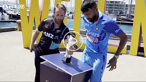 फोटोशूट दरम्यान, जेव्हा दोघेही ट्रॉफीसोबत पोज देत होते, तेव्हा वाऱ्याचा एक सोसावा आला आणि ट्रॉफी ठेवलेल्या डेस्क पडायला लागला. अशा स्थितीत ट्रॉफीचा तोल गेला. विल्यमसनने वेळीच ट्रॉफी पकडली आणि पांड्याच्या हातीत टेबल राहिला. हा व्हिडिओ सोशल मीडियावर चांगलाच व्हायरल होत आहे. चाहते विल्यमसनच्या प्रतिक्रिया वेळेबद्दल खूप बोलत आहेत. 18, 20 आणि 22 नोव्हेंबरला टी-20 मालिकेतील तीन सामने खेळवले जाणार आहेत. यानंतर तीन सामन्यांची वनडे मालिका सुरू होईल. पहिला वनडे 25 नोव्हेंबर, दुसरा वनडे 27 नोव्हेंबर आणि तिसरा एकदिवसीय सामना 30 नोव्हेंबरला खेळवला जाईल. शिखर धवन वनडे मालिकेत टीम इंडियाचे कर्णधारपद सांभाळणार आहे.