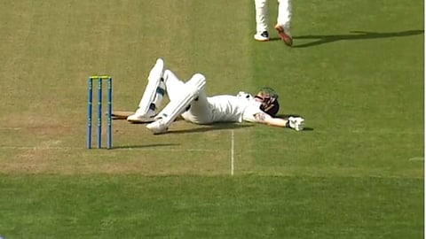 क्रिकेट जगतात सध्या आयपीएल स्पर्धेसह काऊंटी चॅम्पियनशिप देखील सुरू आहे. डरहम आणि ग्लेमोर्गन यांच्यात खेळवण्यात आलेल्या सामन्यादरम्यान एक मजेशीर किस्सा घडला. सामना सुरु असतानाच इंग्लंडचा टेस्ट कर्णधार बेन स्टोक्स (Ben Stokes) अचानक पिचवर झोपला. आणि त्यानंतर जबरदस्त ड्रामा पाहायला मिळाला. ज्याचा व्हिडीओ सध्या व्हायरल होताना दिसत आहे.