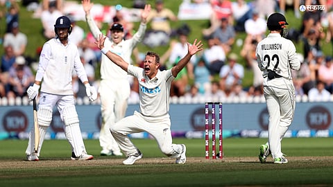 England vs New Zealand 2nd Test Match : न्यूझीलंडने रोमहर्षक कसोटी सामन्यात इंग्लंडचा अवघ्या एका धावेने पराभव केला. वेलिंग्टन येथे झालेल्या सामन्यात न्यूझीलंडने 258 धावांचे लक्ष्य दिले होते. इंग्लंडचा सहज विजयी होईल असे वाटत होते, मात्र बेन फोक्स बाद झाल्यानंतर खेळच उलटला. जेम्स अँडरसनला बाद करत न्यूझीलंडने हा सामना एका धावेने जिंकला. अशाप्रकारे 7 धावापूर्वी जिंकणार असे वाटत असलेला इंग्लंड हाताबाहेर गेला.