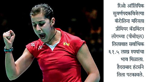 नवी दिल्ली - रिओ ऑलिंपिक सुवर्णपदकविजेत्या कॅरोलिना मरिनला प्रीमियर बॅडमिंटन लीगच्या (पीबीएल) लिलावात सर्वाधिक ६१.५ लाख रुपयांचा भाव मिळाला. हैदराबाद हंटर्सने तिला पटकावले. रिओमध्ये रौप्यपदक जिंकलेल्या पीव्ही सिंधूसाठी चेन्नई स्मॅशर्सने ३९ लाख रुपये मोजले; तर साईना नेहवालला ३३ लाख रुपयांची कमाई झाली. साईनाला अवघे वॉरियर्सने मिळविले. के. श्रीकांतला ५१ लाखांपर्यंत कमाई झाली.