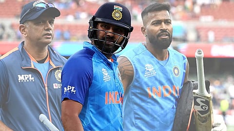 Rahul Dravid Statement About Captain Rohit Sharma Future : भारताचे टी 20 वर्ल्डकपमधील आव्हान संपुष्टात आल्यानंतर संघाचे प्रशिक्षक राहुल द्रविडला कर्णधार रोहित शर्मा आणि विराट कोहलीच्या भविष्याबद्दल प्रश्न विचारण्यात आला. ऑस्ट्रेलियातील टी 20 वर्ल्डकपनंतर भारतीय टी 20 संघाच्या नेतृत्वात बदल होण्याची शक्यता आधीपासूनच वर्तवण्यात येत होती. रोहितचा उत्तराधिकारी म्हणून हार्दिक पांड्याचे नाव सध्या आघाडीवर आहे. याबाबत प्रशिक्षक राहुल द्रविडने इंग्लंडविरूद्धचा सामना हरल्यानंतर वक्तव्य केले आहे.