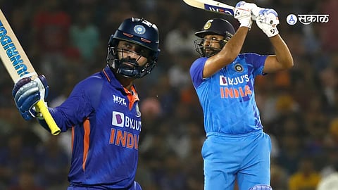IND vs AUS 2nd T20 : भारताचा कर्णधार रोहित शर्माने कॅप्टन्स इनिंग खेळत भारताला दुसऱ्या सामन्यात विजय मिळवून दिला. भारताने ऑस्ट्रेलियाचे 91 धावांचे आव्हान 7.2 षटकात 4 गड्यांच्या मोबदल्यात पार केले. रोहित शर्माने 20 चेंडूत नाबाद 46 धावा केल्या. दिनेश कार्तिकने शेवटच्या षटकाच्या पहिल्याच दोन चेंडूवर एक षटकार एक चौकार मारत सामना संपवला. भारताने तीन सामन्यांच्या मालिकेत 1 - 1 अशी बरोबरी केली. हार्दिक पांड्याने 9, राहुलने 10 आणि विराटने 11 धावा केल्या. झाम्पाने दोन विकेट घेतल्या. ऑस्ट्रेलियाकडून मॅथ्यू वेडने 20 चेंडूत 43 तर कर्णधार फिंचने 15 चेंडूत 31 धावा केल्या. भारताकडून अक्षर पटेलने 2 विकेट्स घेतल्या. (Rohit Sharma Captains Inning Dinesh Karthik Finishing Touch India Defeat Australia)