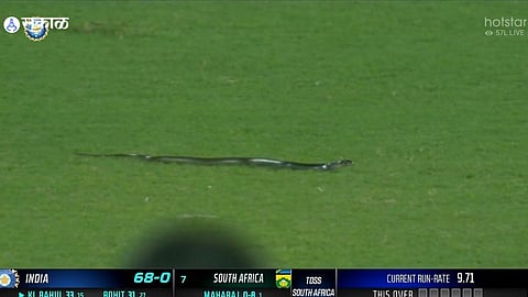 रोहित शर्मा आणि केएल राहुल यांनी नाबाद अर्धशतकी भागीदारी रचली होती. तोपर्यंत मैदानात सापाने एन्ट्री केल्याने सर्वांचीच तारांबळ उडाली. सापाला मैदानातून बाहेर काढेपर्यंत सामना थांबवण्यात आला. जे आफ्रिकेच्या गोलंदाजांना, पावसाला जमले नाही ते या छोटूश्या सापाने करून दाखवले. त्याने काही काळ का असेना रोहित - राहुलचा झंजावात रोखला. सामना थांबला त्यावेळी सात षटके पूर्ण झाली होती आणि भारताने बिनबाद 68 धावा केल्या होत्या.