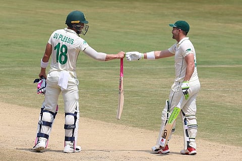 डीन एल्गर विश्वासाने गोलंदाजांना तोंड देत होता. सहाव्या क्रमांकावर फलंदाजीला आलेल्या कप्तान फाफ डू प्लेसिसने पहिल्या पासून सावध फलंदाजी करणे टाळले. त्याने फिरकी गोलंदाजांवर आडव्या बॅटचे स्वीपचे फटके मारत हल्ला चढवला. पुढे सरसावत अश्विनला डू प्लेसिसने मारलेला षटकार अफलातून होता.