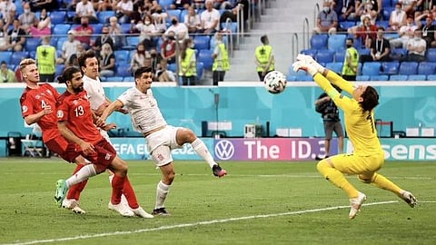 Euro 2021 : गोलकिपर सोमरच्या चपळ खेळीच्या जोरावर 10 मॅन स्वित्झर्लंडने तीन वेळा युरो चॅम्पियन असलेल्या स्पेनलाही पेनल्टी शूट आउटपर्यंत नेले. पण पेनल्टी शूट आउटमधील चुकांनी सोमरच्या कामगिरीवर पाणी फेरले. स्पेनने पहिल्यांदा केलेली चूक टाळून तीन शूटवर गोल नोंदवत सेमीफायनलचे तिकीट पक्के केले. बेल्जियम आणि इटली यांच्यातील विजेत्याशी ते सेमीफायनलमध्ये भिडतील. मिनी वर्ल्ड कप समजल्या जाणाऱ्या युरो कप स्पर्धेतील क्वार्टर फायनलमधील पहिली लढत रंगतदार झाली. (UEFA Euro 2021 Switzerland vs Spain Match Score Final Result)