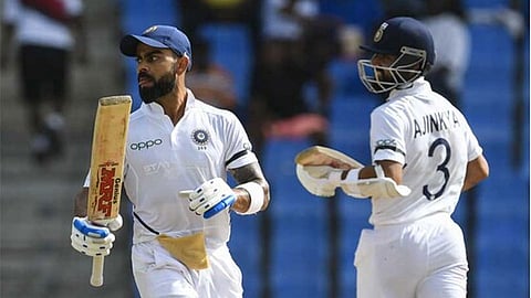 नॉर्थ साउंड (अँटिग्वा) : कर्णधार विराट कोहली आणि अजिंक्य रहाणे यांच्या अर्धशतकामुळे भारताने वेस्ट इंडीजविरुद्धच्या पहिल्या कसोटी सामन्यात मजबूत आघाडी घेतली असून, तिसऱ्या दिवसअखेर दुसऱ्या डावात 3 बाद 185 धावा करत 260 धावांची आघाडी घेतली आहे.