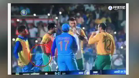 दक्षिण आफ्रिकेच्या फलंदाजीदरम्यान ही घटना घडली होती. फ्लडलाइट्सच्या समस्येमुळे सामना काही काळासाठी थांबवला होता. त्या दरम्यान युझवेंद्र चहल कॅमेऱ्यात कैद झाला. व्हायरल व्हिडिओमध्ये ऋषभ पंत, क्विंटन डी कॉक, एडन मार्कराम आणि तबरेझ शम्सी उभे असल्याचे दिसत आहे. तेव्हा युजवेंद्र चहलही त्यांच्याकडे येतो. युजी मजा करत तबरेज शम्सीला गुडघ्याने लाथ मारताना कॅमेऱ्यात कैद झाला आहे.