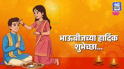 Bhau Beej 2025 celebrations: पाच दिवस साजरा केला जाणारा दिवाळी सणातील भाऊबीज हा एक महत्वाचा सण आहे. हा दिवस भावा-बहिणींसाठी खास असतो. तसेच नात्यातील गोडवा वाढवणारा हा सण आहे. हा दिवस कार्तिक महिन्यातील शुल्क पक्षातील द्वितीया तिथीला भाऊबीज साजरी केली जाते. यंदा २३ ऑक्टोबरला म्हणजेच उद्या हा सण साजरा केला जाणार आहे. या दिवशी बहिण भावाला ओवाळून दीर्घायुष्यासाठी प्रार्थना करते. तसेच या दिवसाला अधिक खास बनवण्यासाठी लाडक्या भावा-बहिणीला मराठीतून खास शुभेच्छा पाठवू शकतात.