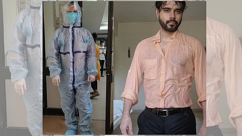 गुजरातमधील धारपूर येथील GMERS Hospital मधील डॉ. सोहिल यांनी त्याचे दोन फोटो शेअर केले आहेत. यापैकी पहिल्या फोटोमध्ये ते पीपीई किटमध्ये दिसत आहेत. तर, दुसऱ्या फोटोमध्ये ते पीपीई किटशिवाय दिसत आहेत. मात्र, पीपीई किट काढल्यानंतर त्यांचं संपूर्ण अंग घामाने चिंब भिजलेलं पाहायला मिळत आहे. विशेष म्हणजे पीपीई किट घातल्यानंतर डॉक्टरांनादेखील असंख्य त्रास जाणवत असतात. मात्र, त्याही परिस्थितीत ते रुग्णांवर उपचार करत असतात हे सांगणार हा फोटो आहे.