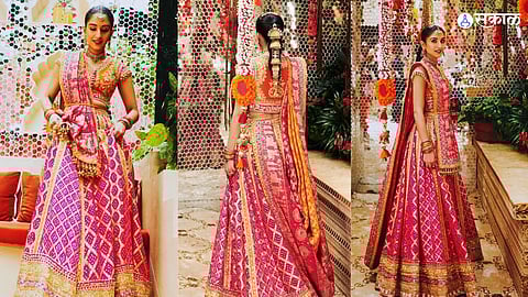 या सुंदर गुलाबी रंगाच्या बांधणी लेहेंग्यावर राधिकाने तिच्या आईचे दागिने परिधान केले होते. तिच्या या दागिन्यांमुळे लेहेंग्याला चारचाँद लागले आहेत. या दागिन्यांमध्ये राधिका खूपच गोड दिसत आहे. तिने गळ्यात चोकर सेट घातला असून त्यावर मॅचिंग कानातले घातले आहेत. तिची बिंदी देखील लक्ष वेधून घेतेय.