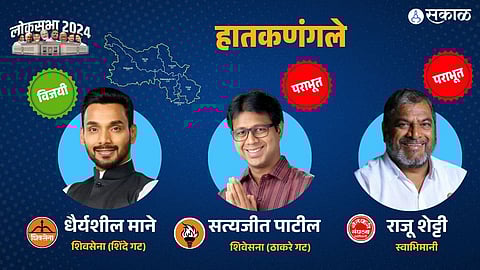 हातकणंगले लोकसभा मतदारसंघात धैर्यशील माने यांनी पुन्हा एकदा विजय मिळवला आहे. धैर्यशील माने १३४२६ मतांनी विजय झाले आहेत. तीन महत्वाचे उमेदवार हातकणंगलेत मैदानात होते. धैर्यशील माने यांना ५ लाख २० हजार १९० मते मिळाली. तर सत्यजीत आबा सरुडकर यांना ५ लाख ०६ हजार ७६४ मते मिळाली. राजू शेट्टी यांना १ लाख ७९ हजार ८५० मिळाली. शेट्टी यांचा ३ लाख ४० हजार ३४० मतांनी पराभव झाला.