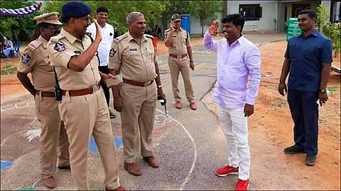 हैदराबाद : विविध ठिकाणी खासदाराला पोलिस सलाम करताना दिसतात. मात्र, एका खासदाराने पोलिसांना सलाम केला असून, यामागील कारणही वेगळे आहे. संबंधित छायाचित्र सोशल मीडीयावर व्हायरल झाले आहे.