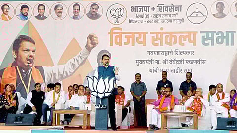 जळगाव - सागरपार्क येथील विजय संकल्प सभेत बोलताना मुख्यमंत्री देवेंद्र फडणवीस.