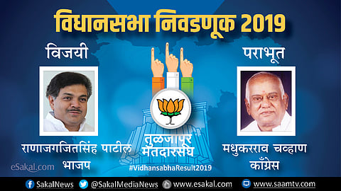 तुळजापूर : तुळजापूर विधानसभा मतदारसंघात भारतीय जनता पक्षाचे राणा जगजितसिंह पाटील विजयी झाले. त्यामुळे तुळजापूर मतदारसंघात पहिल्यांदाच कमळ फुलले आहे. सलग चारवेळा या मतदारसंघातून निवडून आलेले काँग्रेसचे मधुकरराव चव्हाण यांचा त्यांनी पराभव केला.