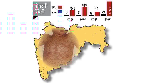 मुंबई - मुंबईसह राज्यात गोवरचे रुग्ण वाढले आहेत. राज्यात २०२२ मध्ये आतापर्यंत १४२ उद्रेक झाले आहेत. या आधी २०२१ मध्ये फक्त एक, २०२० मध्ये दोन, २०१९ मध्ये तीन गोवर उद्रेक नोंदवण्यात आले होते. राज्यात यंदा एकूण १,१०४ गोवरच्या निश्चित रुग्णांची नोंद झाली; तर एकूण २० गोवरच्या मृत्यूंची नोंद झाली. २०२२ या वर्षात सर्वाधिक गोवर रुग्ण आणि मृत्यू झाले आहेत.