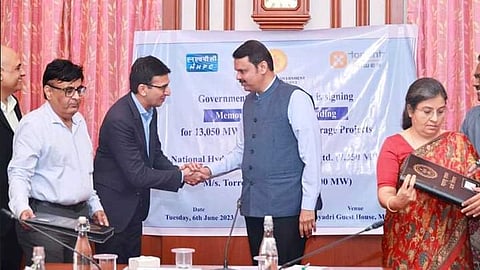 सह्याद्री राज्य अतिथीगृह येथे राज्यात उदंचन जलविद्युत प्रकल्प विकसनासाठी महाराष्ट्र शासन व नॅशनल हायड्रो पॉवर कॉर्पोरेशन लिमिटेडसोबत ४४ हजार कोटी आणि टोरंट पॉवर लिमिटेड यांच्या दरम्यान २७ हजार कोटी इतक्या रकमेचे सामंजस्य करार करण्यात आला.