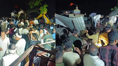 अकोला जिल्ह्यातल्या बाळापूर तालुक्यातील पारस येथील बाबूजी महाराज मंदिरात दुर्दैवी घटना घडली आहे. रविवारी मंदीरात आरती सुरू असतानाच मंदिराच्या शेडवर झाड कोसळल्याची घटना घडली होती.