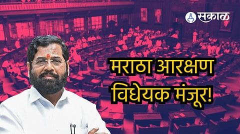मुंबई- मराठा आरक्षणाचे विधेयक आज विधानसभेत सादर करण्यात आले होते. यावर मुख्यमंत्री एकनाथ शिंदे यांनी आपली भूमिका स्पष्ट केली. त्यानंतर एकमताने मराठा आरक्षणाचे विधेयक मंजूर करण्यात आले आहे. त्यामुळे मराठा समाजाला आता शैक्षणिक संस्था आणि नोकऱ्यांमध्ये १० टक्के आरक्षण असणार आहे. (Bill of Maratha Reservation passed unanimously in the Legislature assembly )