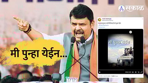 भाजप महाराष्ट्रकडून सायंकाळी सात वाजताच्या सुमारास एक व्हिडिओ ट्विट करण्यात आला होता. या व्हिडिओमध्ये देवेंद्र फडणवीस यांनी पुन्हा येईनचा नारा दिला होता. त्यामुळे फडणवीस शिंदेंना दूर करुन पुन्हा मुख्यमंत्री होतील का? अशी चर्चा राजकीय वर्तुळात सुरु झाली होती. विरोधक आणि सत्ताधारी यांच्याकडून यावरुन प्रतिक्रिया येऊ लागल्या होता.