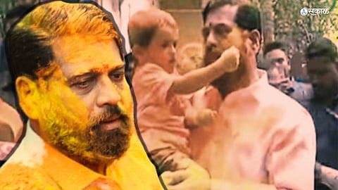 मुख्यमंत्री शिंदे ठाण्यात कुटूंबासोबत धुळवड साजरी करताना पाहायला मिळाले. त्यांचा मुलगा खासदार श्रीकांत शिंदे त्यांना रंग लावताना पाहायला दिसले. यावेळी त्यांचा नातूदेखील दिसला. यावेळी मुख्यमंत्री शिंदे यांनी सहपत्निक धुळवड साजरी केली.