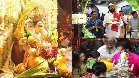 गणेश चतुर्थी हा सण दरवर्षी मोठ्या थाटामाटात साजरा केला जातो. यावेळी मंदिरापासून घरोघरी गजाननाची प्रतिष्ठापना केली जाते. विघ्नांचा नाश करणाऱ्या श्री गणेशाची प्रतिष्ठापना करण्याच्या परंपरेसह भाविक गणेशाची पूजा करतात. राजकीय नेत्यांच्या घरी देखील बाप्पांचे आगमन झाले आहे.(Latest Marathi News)