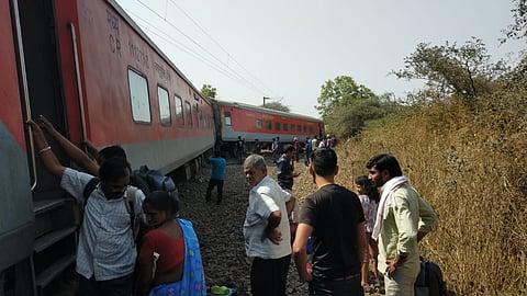नाशिकमध्ये रेल्वे रुळावरुन घसरल्याने ५ प्रवासी जखमी झाले आहेत. रुळांजवळ सापडलेला एक मृतदेह प्रवाशाचा नसून रेल्वे रुळावरून घसरण्याआधीपासून तो तेथे असल्याचे मानले जात आहे अशी माहिती मध्य रेल्वे भुसावळ विभागाचे जनसंपर्क अधिकारी यांनी दिली आहे. दरम्यान घटनास्थळी आढळलेला मृतदेह नाशिक जिल्हा रुग्णालयात उत्तरीय तपासणीसाठी आणण्यात आला आहे.