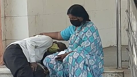या महिला पु्न्हा शासकीय रुग्णालयात आल्या. त्या ठिकाणी ड्युटीवर असलेल्या डॅाक्टरांना हात जोडून विनंती करत पतीला रुग्णालयात दाखल करून घेण्याची विनंती केली. मात्र कुणालाही काही वाटले नाही, त्यामुळे या महिला पतीसह रुग्णालयाच्या पायरीवरच बसून होत्या. दुपारी तीन वाजेपर्यंत हे दांपत्य बसून होते.