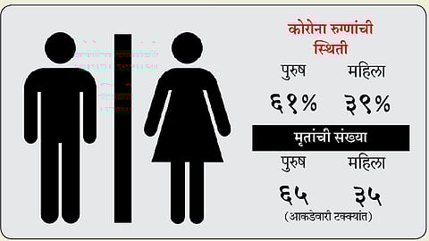 राज्याच्या वैद्यकीय शिक्षण व संशोधन संचालनालयाच्या अहवालानुसार, एकूण रुग्णसंख्येत पुरुषांचे प्रमाण महिलांच्या तुलनेत अधिक आहे. राज्यातील कोरोना रुग्णांमध्ये पुरुषांचे प्रमाण सर्वाधिक असून, महिलांचे कमी आहे. त्यामुळे पुरुषांना कोरोनाचा संसर्ग अधिक प्रमाणात होत असल्याचे स्पष्ट होत आहे. कोरोनामुळे मृत्यू होण्याचे प्रमाणदेखील पुरुषांमध्ये अधिक आहे. पुरुषांमध्ये हे प्रमाण जास्त असून महिलांमध्ये कमी आहे.