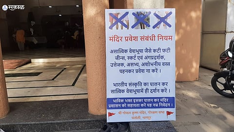 आता नागपूरच्या श्री गोपाल कृष्ण मंदिरामध्ये वस्त्रसंहिता लागू करण्यात आलेली आहे. त्यानुसार फाटलेली जीन्स, स्कर्ट आणि अंगप्रदर्शन करणारे कपडे घालून मंदिरात प्रवेश करता येणार नाही. नागपूरपाठोपाठ संपूर्ण राज्यामध्ये हा निर्णय घेण्यात येत आहे. महाराष्ट्र मंदिर महासंघाने वस्त्रसंहितेचा निर्णय जाहीर केलीय.