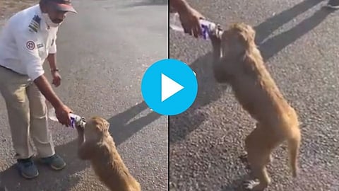 गेल्या काही दिवसांपासून राज्यातील तापमानात लक्षणीय वाढ झाली आहे. वाढत्या उकाड्यामुळे फक्त माणसंच नाही तर जनावरंही हैराण झाली आहेत. अनेक ठिकाणी फिरूनही पशू-पक्ष्यांना पाणी मिळत नाहीये. अशातच एका पोलीस कर्मचाऱ्याने एका माळशेज घाटात तहानलेल्या माकडाला पाणी पाजून त्याची तहान भागवली आहे. या घटनेचा व्हिडीओ सध्या सोशल मीडियावर व्हायरल होत आहे. (Maharashtra Traffic police feed water to thirsty monkey in Malshej Ghat, video goes viral)
