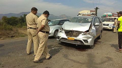 गीते यांच्या वाहनासमोरील पोलिसांच्या पायलट गाडीसमोर दुचाकीस्वार आडवा आला. त्यामुळे पोलिसांच्या गाडीचा अचानक ब्रेक दाबण्यात आला. त्यामुळे मागे असलेली गीते यांच्या गाडीने समोरील पायलट व्हॅनला धडक दिली. तर गीते यांच्या मागे असलेल्या दुसऱ्या एका पायलट व्हॅनने गीते यांच्या गाडीला धडक दिली.
