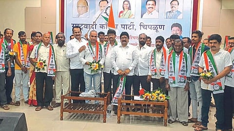 चिपळूण : आमदार शेखर निकम (Shekhar Nikam)यांच्या कर्यपद्धतीवर विश्वास ठेवून भाजप, शिवसेना (BJP,Shivsena)पक्षाला ''जोर का झटका''देत शेकडो पदाधिकारी कार्यकर्त्यांनी कोकरे जिल्हा परिषद गटाच्या मेळाव्यात राष्ट्रवादी काँग्रेस पक्षात जाहीर प्रवेश केला. या भागातील राष्ट्रवादी पक्षाच्या माध्यमातून अनेक पदे भोगलेल्यांनी इतर राजकीय पक्षामध्ये प्रवेश केला होता. त्यामुळे कोकरे जिल्हा परिषद गटाच्या या मेळाव्याकडे संपूर्ण तालुक्याचे लक्ष लागले होते. या जाहीर मेळाव्याने राष्ट्रवादी काँग्रेसने विरोधकांना प्रत्युत्तर दिले.
