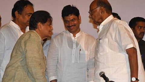 राज्यातील सत्तास्थापनेचा तिढा सोडविण्यासाठी काल (मंगळवार) काँग्रेस आणि राष्ट्रवादी काँग्रेसची महत्त्वपूर्ण बैठक झाली. या बैठकीला दिल्लीतून मल्लिकार्जुन खर्गे, वेणुगोपाळ आणि अहमद पटेल हे प्रमुख काँग्रेस नेते आले होते. शरद पवार यांनी या नेत्यांशी चर्चा केल्यानंतर संयुक्त पत्रकार परिषद घेतली. या पत्रकार परिषदेत कोण कोठे बसणार हे शरद पवार स्वतः सांगत होते. त्यावेळी आपल्या मागच्याच खुर्चीवर धनंजय मुंडे यांना बसण्यास सांगितले.