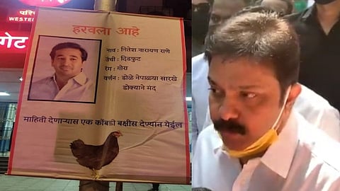 शिवसैनिक हल्ला प्रकरणानंतर आमदार नितेश राणे (Nitesh Rane) अज्ञातस्थळी आहेत. यावरून मुंबईत (Mumbai)बॅनर बाजीला काल रात्री(ता.३०) सुरुवात झाली. मुंबईतील चर्चगेट (Churchgate) या ठिकाणी नितेश राणे यांच्या फोटोसहीत एक बॅनर लावण्यात आले आहे. यात नितेश राणे हरवले आहेत त्यांच्या बद्दल माहिती देणाऱ्यास एक कोंबडी बक्षीस देण्यात येईल. असे नमूद केले आहे. या बॅनरबाजीवरून सोशल मीडियावर प्रचंड गदारोळ माजला आहे. यावरून भाजपचे प्रसाद लाड (Prasad Lad) यांनी तात्काळ बॅनरबाजी करणाऱ्यांना अटक करावी अशी मागणी केली आहे. आज ते मुंबईत बोलत होते.