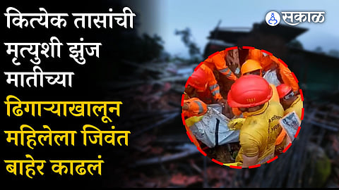 Raigad Irshalwadi Landslide Update : रायगड जिल्ह्यातील इर्शाळवाडी येथे दरड कोसळून मोठी दुर्घटना झाली. यामध्ये आत्तापर्यंत १६ जणांचा मृत्यू झाला असून १०० पेक्षा जास्त नागरिक मातीच्या ढिगाऱ्याखाली अडकल्याची भिती व्यक्त केली जात आहे. त्यातच बचाव पथकाकडून एका महिलेला जिवंत बाहेर काढण्यात आलं आहे. यासंदर्भातील व्हिडिओ सोशल मीडियावर व्हायरल झाला आहे.