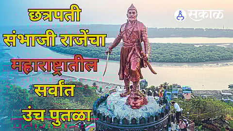 छत्रपती संभाजी राजे यांचा पूर्णाकृती पुतळ्याचा पाया ३५ फूट असून, वर २१ फूट असा एकूण ५६ फूट उंच पुतळा आहे.