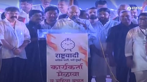 Sharad Pawar: नवी मुंबईत नेरुळमध्ये राष्ट्रवादी काँग्रेसची सभा आहे. राष्ट्रवादी काँग्रेसने कार्यकर्ता मेळावा व महिला बचत गट मेळावा आयोजित केला होता. या कार्यक्रमात राष्ट्रवादीचे अध्यक्ष शरद पवार यांनी हजेरी लावली. जोरदार पाऊस सुरु असल्यामुळे स्वागत समारंभ थांबवून कार्यक्रमाला सुरुवात करण्याची विनंती शरद पवार यांनी केली.
