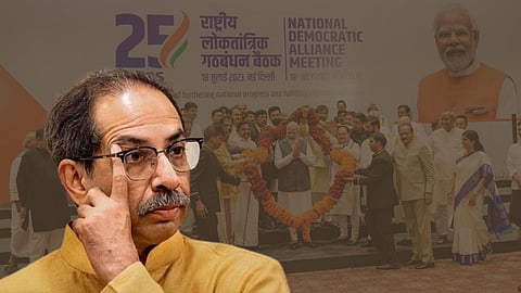 मुंबई - आगामी लोकसभा निवडणुकीसाठी विरोधकांनी 'इंडिया' नावाची आघाडी स्थापन केली. त्याचदिवशी केंद्रातील मोदी सरकारने अनेक वर्षांनंतर एनडीएची बैठक बोलवली होती. या बैठकीत एनडीएचे ३८ राजकीय पक्ष सोबत आले होते. यावर उद्धव ठाकरे यांनी जोरदार हल्लाबोल केला.