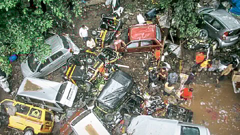 पुणे शहरात काल अवघ्या अडीच तासांत ४७ मिलिमीटर पावसाचा तडाखा बसला. शेकडो वाहने वाहून गेली. हजारो घरांत पाणी शिरले. अरण्येश्वर भागातील टांगेवाला कॉलनीमध्ये सोसायटीची सीमाभिंत कोसळून एकाच कुटुंबातील पाच जणांचा मृत्यू झाला. तावरे कॉलनीमध्ये एक मृतदेह वाहत आला; तर सिंहगड रस्ता, कात्रज, घोरपडी, वानवडी येथील घटनांत सहा नागरिक वाहून गेले. रात्री आठ वाजेपर्यंत पोलिसांना ११ मृतदेह सापडले होते. सुमारे ३५०० कुटुंबांना महापालिकेने सुरक्षित ठिकाणी हलविले आहे. पावसामुळे शहरातील जनजीवन विस्कळित झाले.